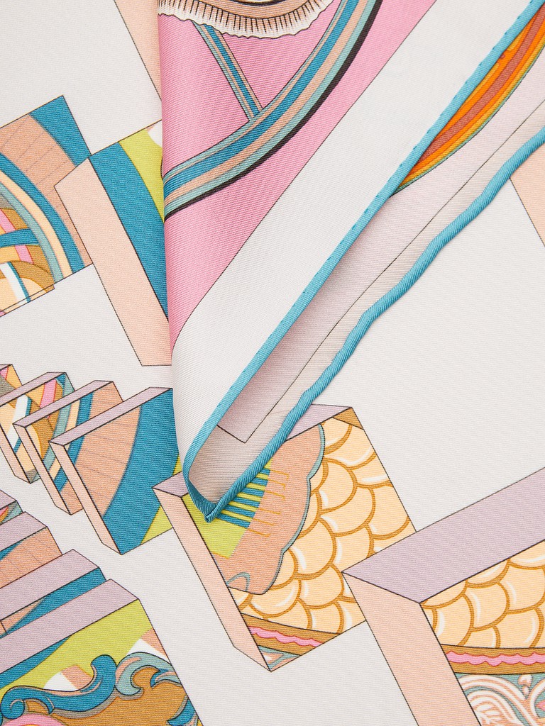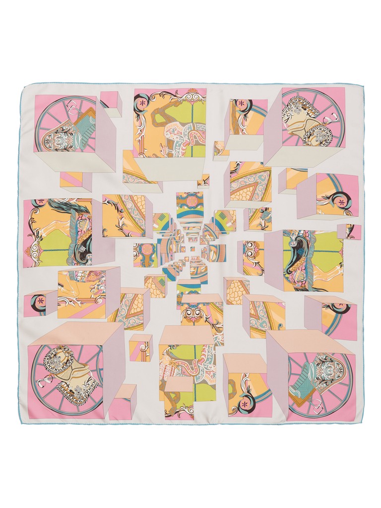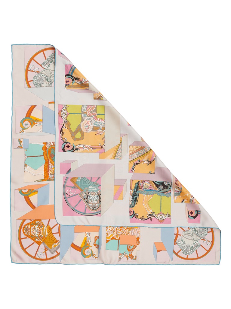 Единый принт наносится на абсолютно непохожие по своему составу материалы — кожу и велюр (сумки и перчатки), шерсть, вискозу, полиэстер, лен и хлопок (платки и одежда), материалы с водостойким покрытием (зонты).