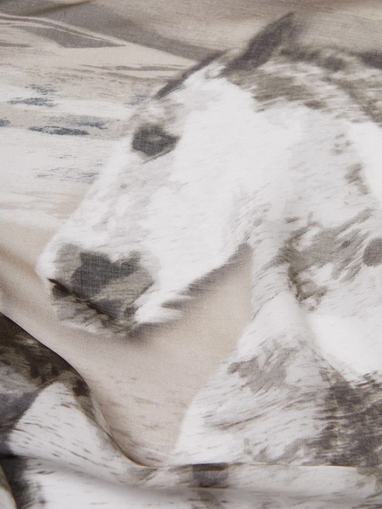 Единый принт наносится на абсолютно непохожие по своему составу материалы — кожу и велюр (сумки и перчатки), шерсть, вискозу, полиэстер, лен и хлопок (платки и одежда), материалы с водостойким покрытием (зонты).