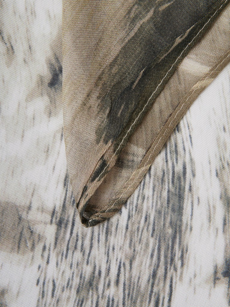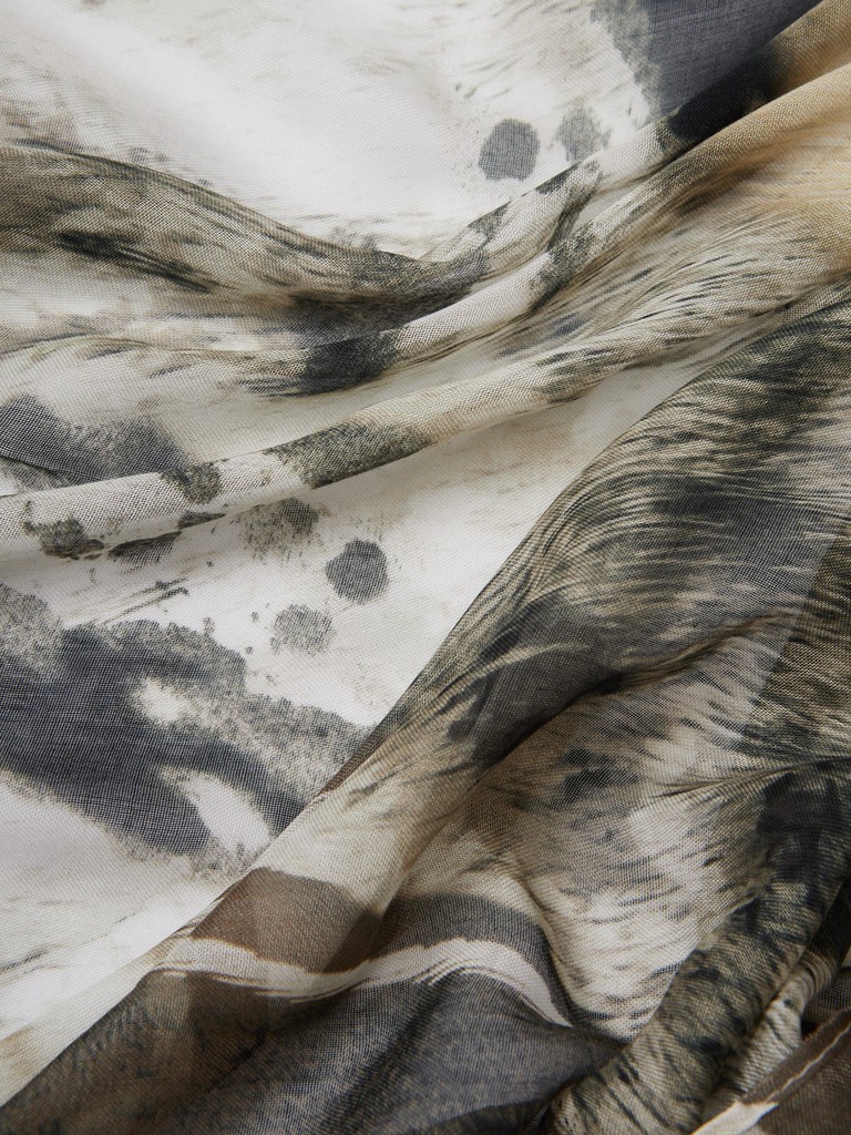Единый принт наносится на абсолютно непохожие по своему составу материалы — кожу и велюр (сумки и перчатки), шерсть, вискозу, полиэстер, лен и хлопок (платки и одежда), материалы с водостойким покрытием (зонты).
