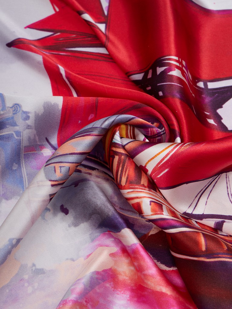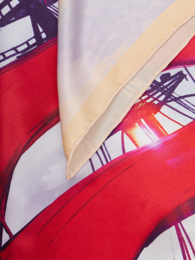 Единый принт наносится на абсолютно непохожие по своему составу материалы — кожу и велюр (сумки и перчатки), шерсть, вискозу, полиэстер, лен и хлопок (платки и одежда), материалы с водостойким покрытием (зонты).