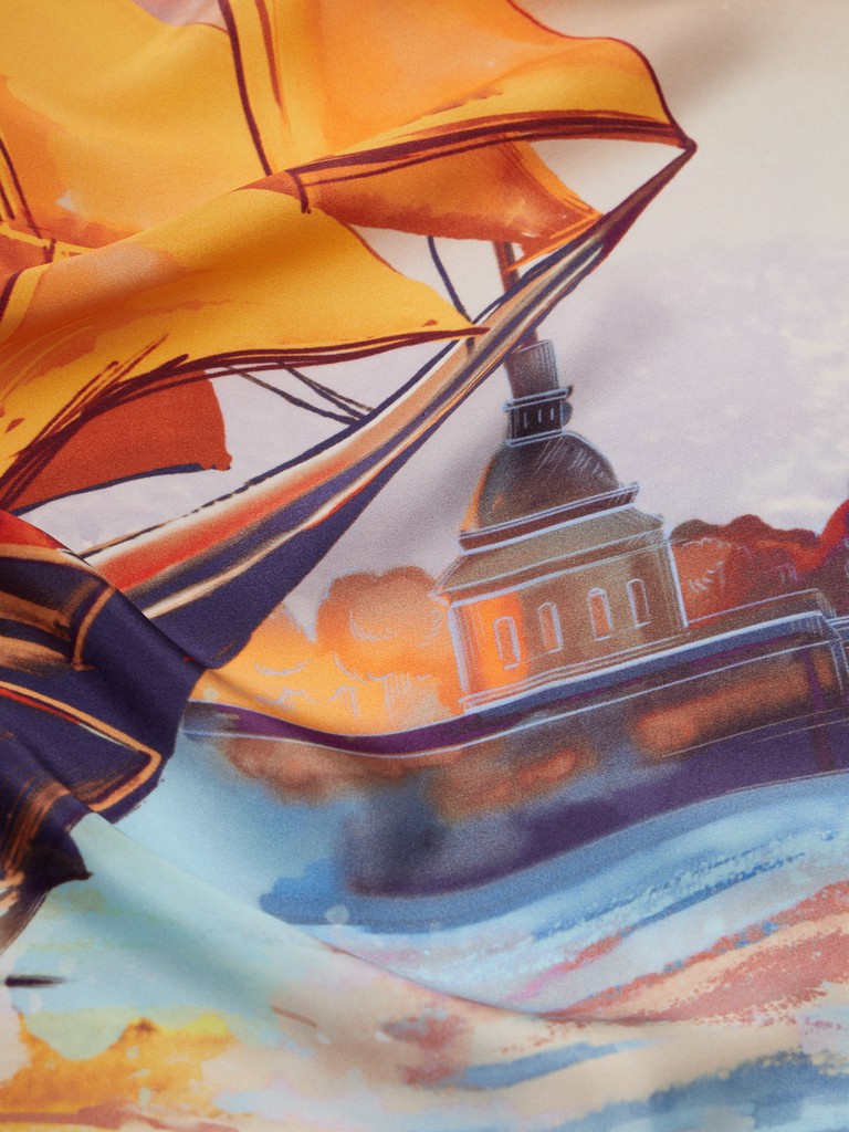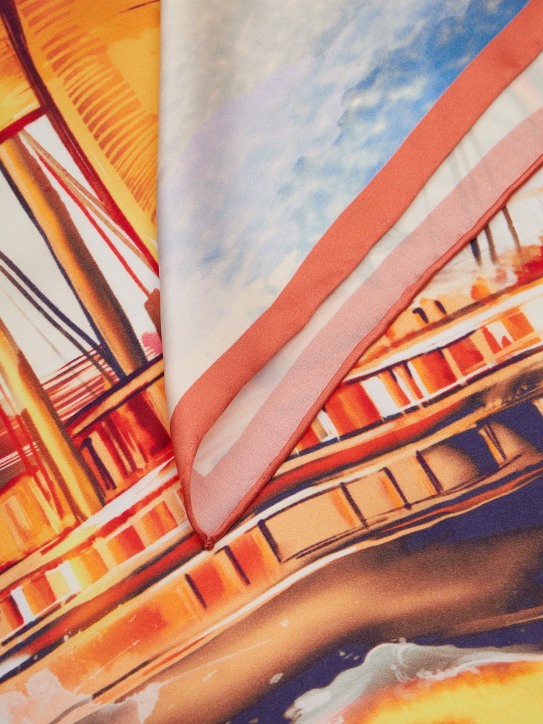 Единый принт наносится на абсолютно непохожие по своему составу материалы — кожу и велюр (сумки и перчатки), шерсть, вискозу, полиэстер, лен и хлопок (платки и одежда), материалы с водостойким покрытием (зонты).