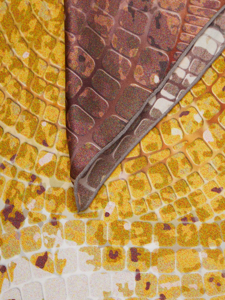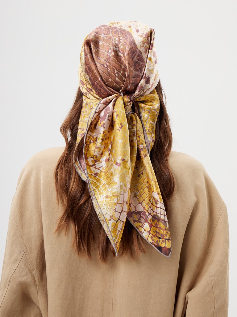 Единый принт наносится на абсолютно непохожие по своему составу материалы — кожу и велюр (сумки и перчатки), шерсть, вискозу, полиэстер, лен и хлопок (платки и одежда), материалы с водостойким покрытием (зонты).