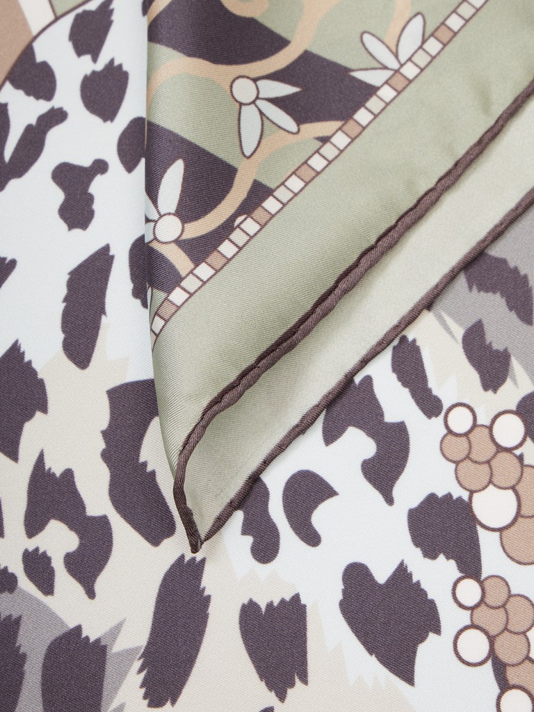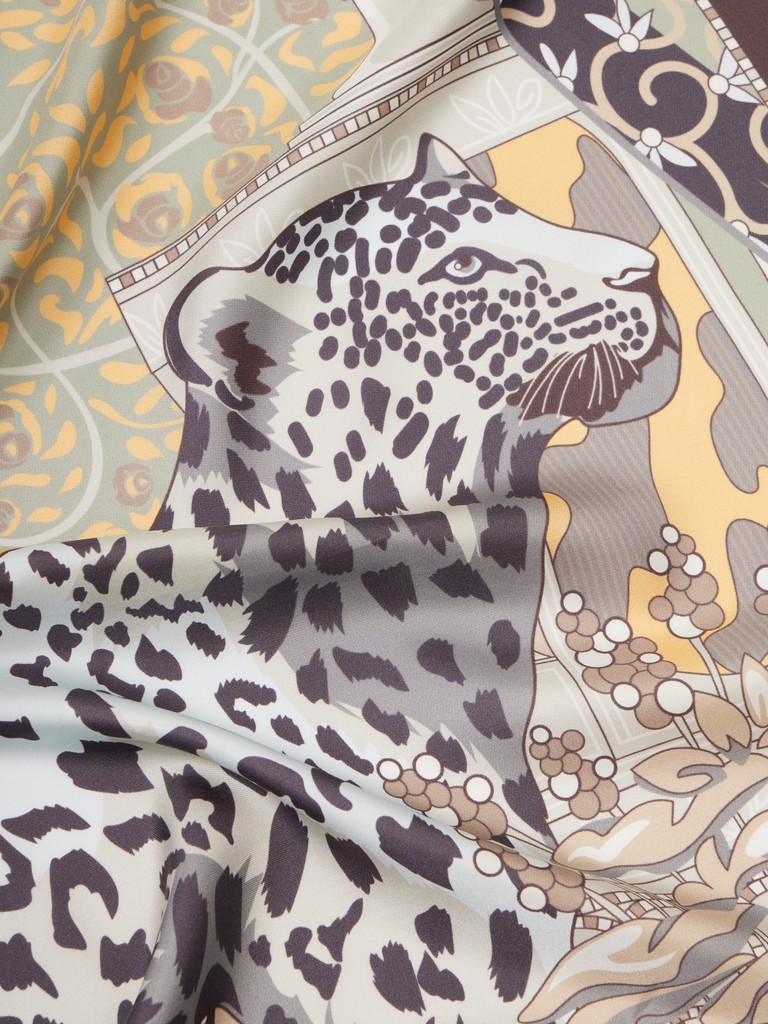 Единый принт наносится на абсолютно непохожие по своему составу материалы — кожу и велюр (сумки и перчатки), шерсть, вискозу, полиэстер, лен и хлопок (платки и одежда), материалы с водостойким покрытием (зонты).