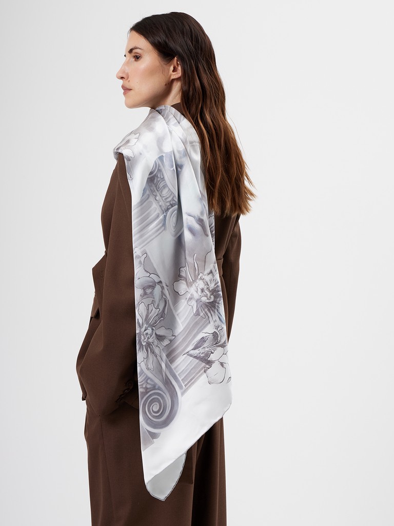 Единый принт наносится на абсолютно непохожие по своему составу материалы — кожу и велюр (сумки и перчатки), шерсть, вискозу, полиэстер, лен и хлопок (платки и одежда), материалы с водостойким покрытием (зонты).