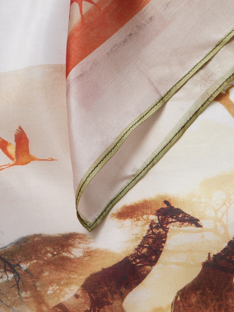 Единый принт наносится на абсолютно непохожие по своему составу материалы — кожу и велюр (сумки и перчатки), шерсть, вискозу, полиэстер, лен и хлопок (платки и одежда), материалы с водостойким покрытием (зонты).