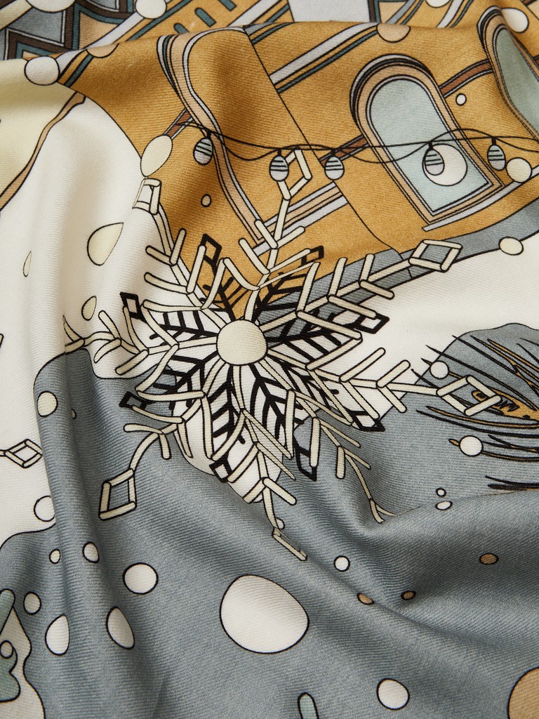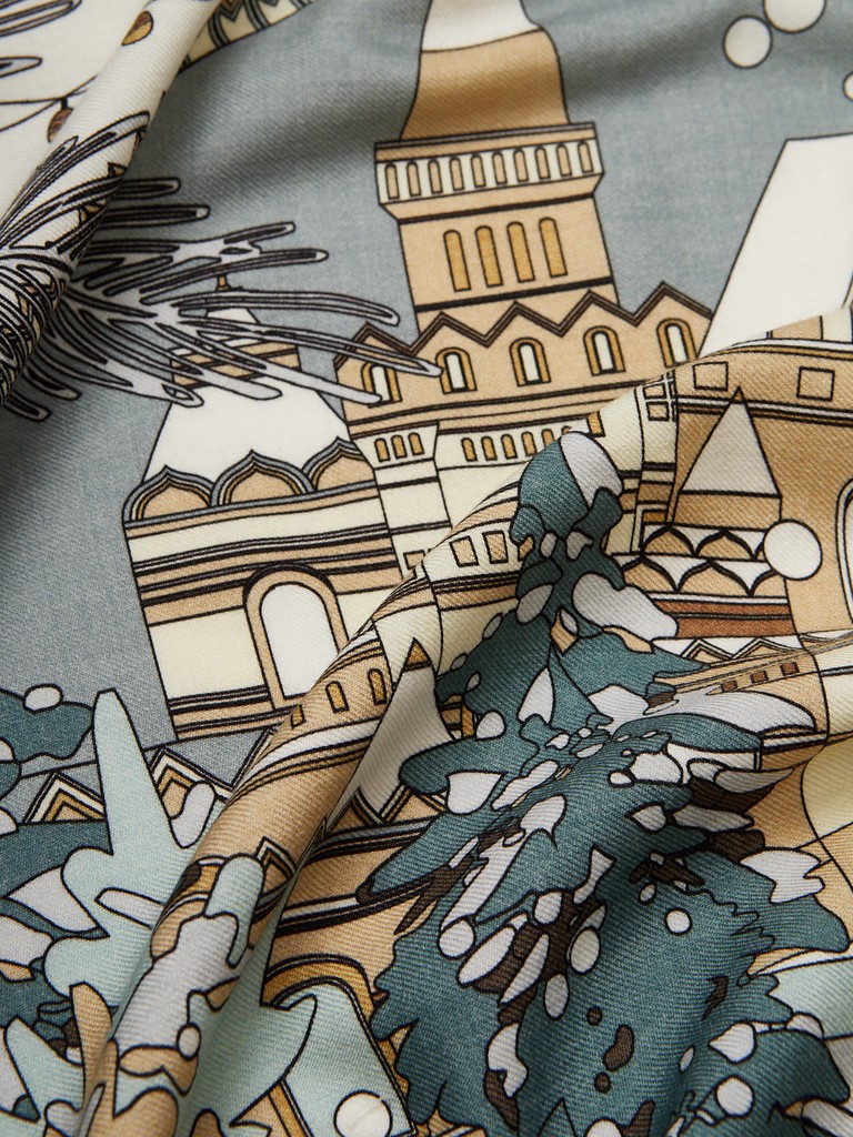 Единый принт наносится на абсолютно непохожие по своему составу материалы — кожу и велюр (сумки и перчатки), шерсть, вискозу, полиэстер, лен и хлопок (платки и одежда), материалы с водостойким покрытием (зонты).