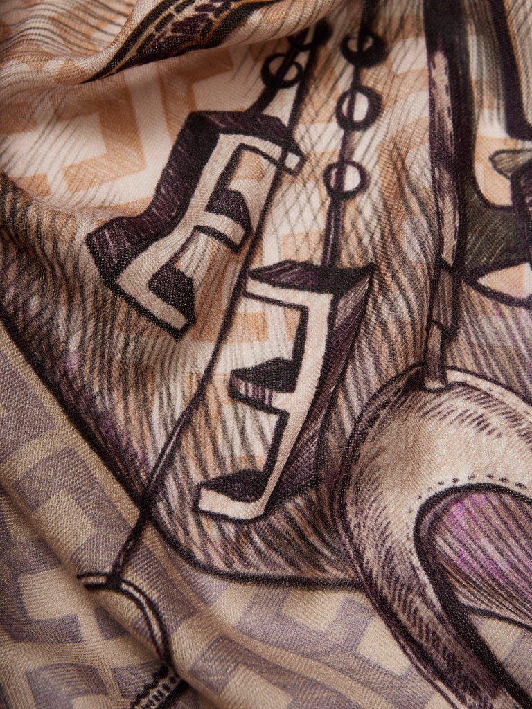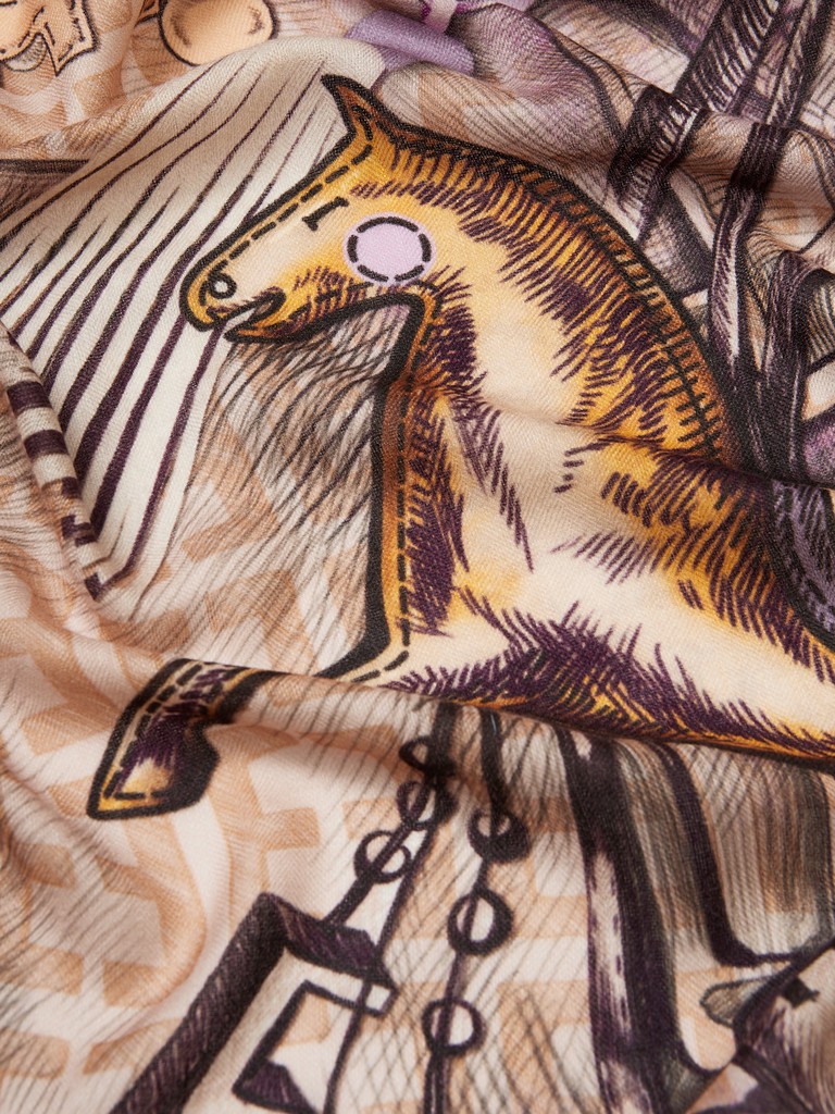 Единый принт наносится на абсолютно непохожие по своему составу материалы — кожу и велюр (сумки и перчатки), шерсть, вискозу, полиэстер, лен и хлопок (платки и одежда), материалы с водостойким покрытием (зонты).