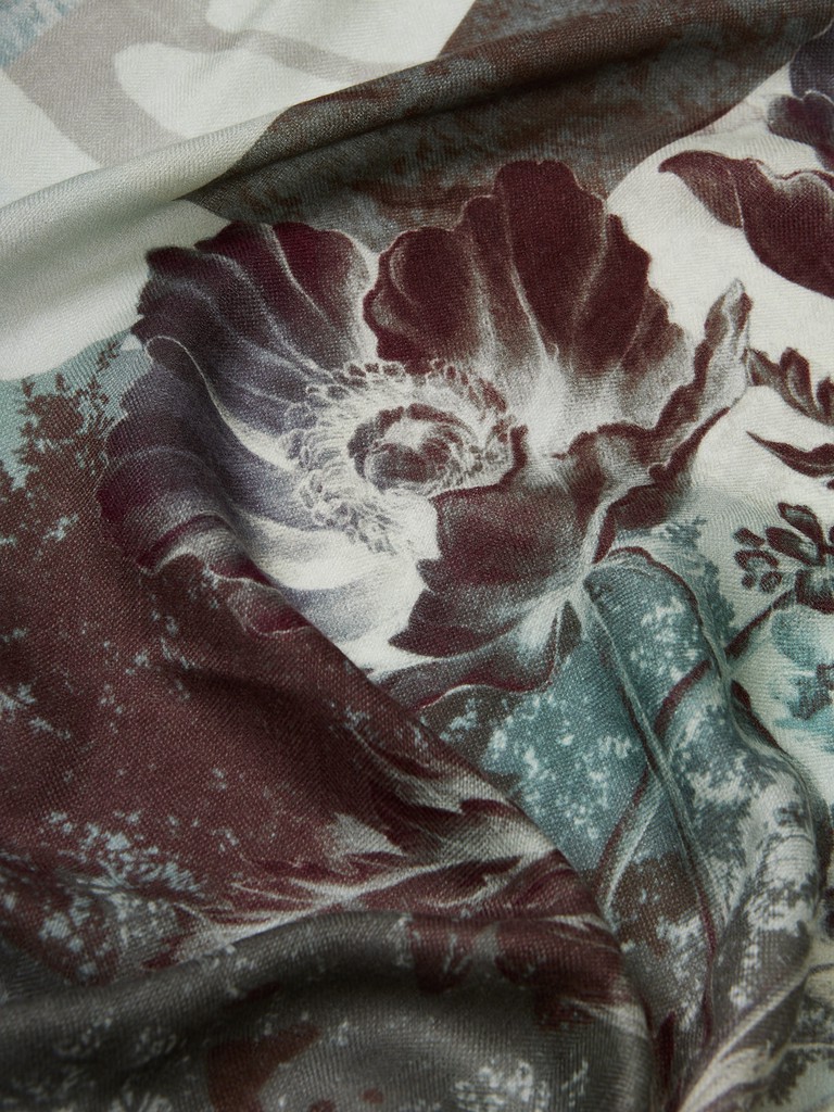 Единый принт наносится на абсолютно непохожие по своему составу материалы — кожу и велюр (сумки и перчатки), шерсть, вискозу, полиэстер, лен и хлопок (платки и одежда), материалы с водостойким покрытием (зонты).