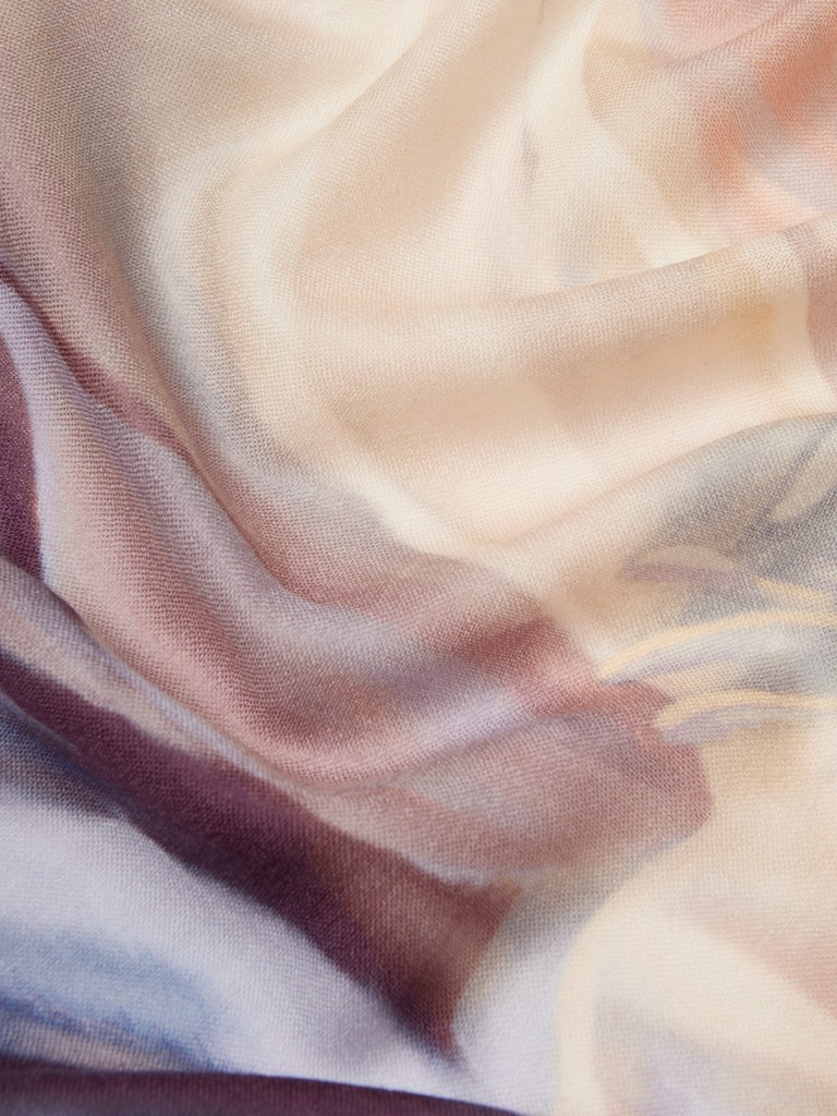 Единый принт наносится на абсолютно непохожие по своему составу материалы — кожу и велюр (сумки и перчатки), шерсть, вискозу, полиэстер, лен и хлопок (платки и одежда), материалы с водостойким покрытием (зонты).