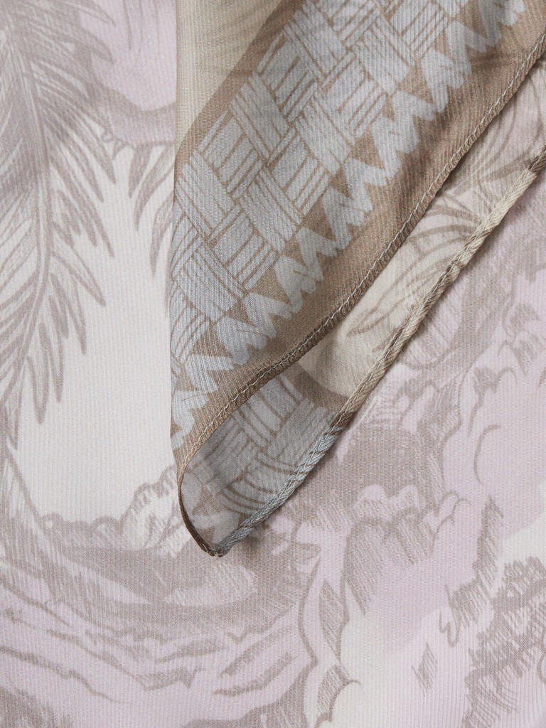 Единый принт наносится на абсолютно непохожие по своему составу материалы — кожу и велюр (сумки и перчатки), шерсть, вискозу, полиэстер, лен и хлопок (платки и одежда), материалы с водостойким покрытием (зонты).