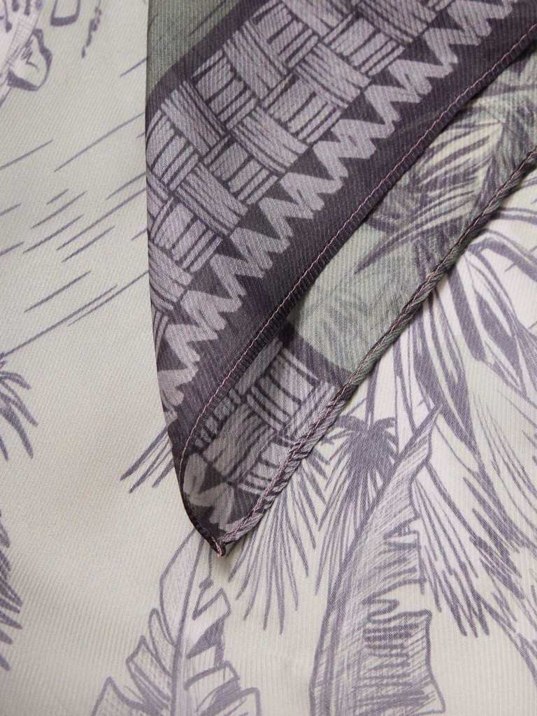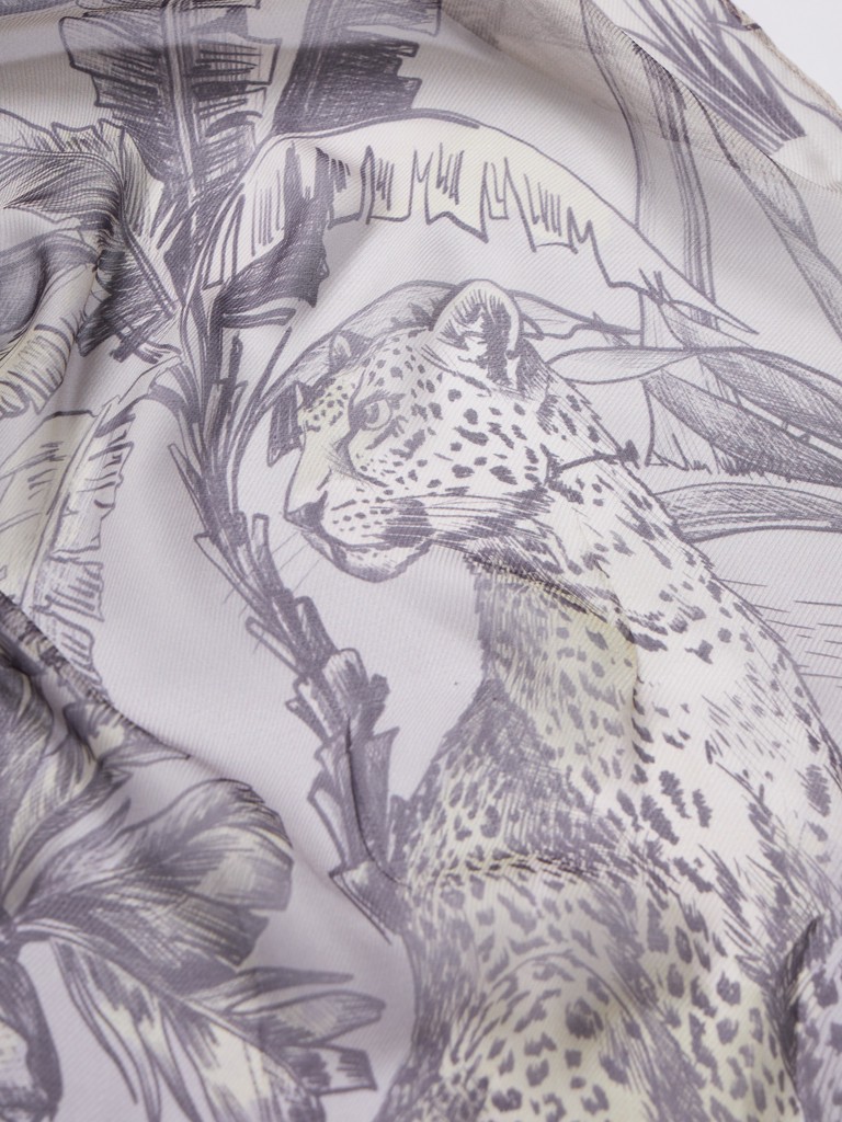 Единый принт наносится на абсолютно непохожие по своему составу материалы — кожу и велюр (сумки и перчатки), шерсть, вискозу, полиэстер, лен и хлопок (платки и одежда), материалы с водостойким покрытием (зонты).