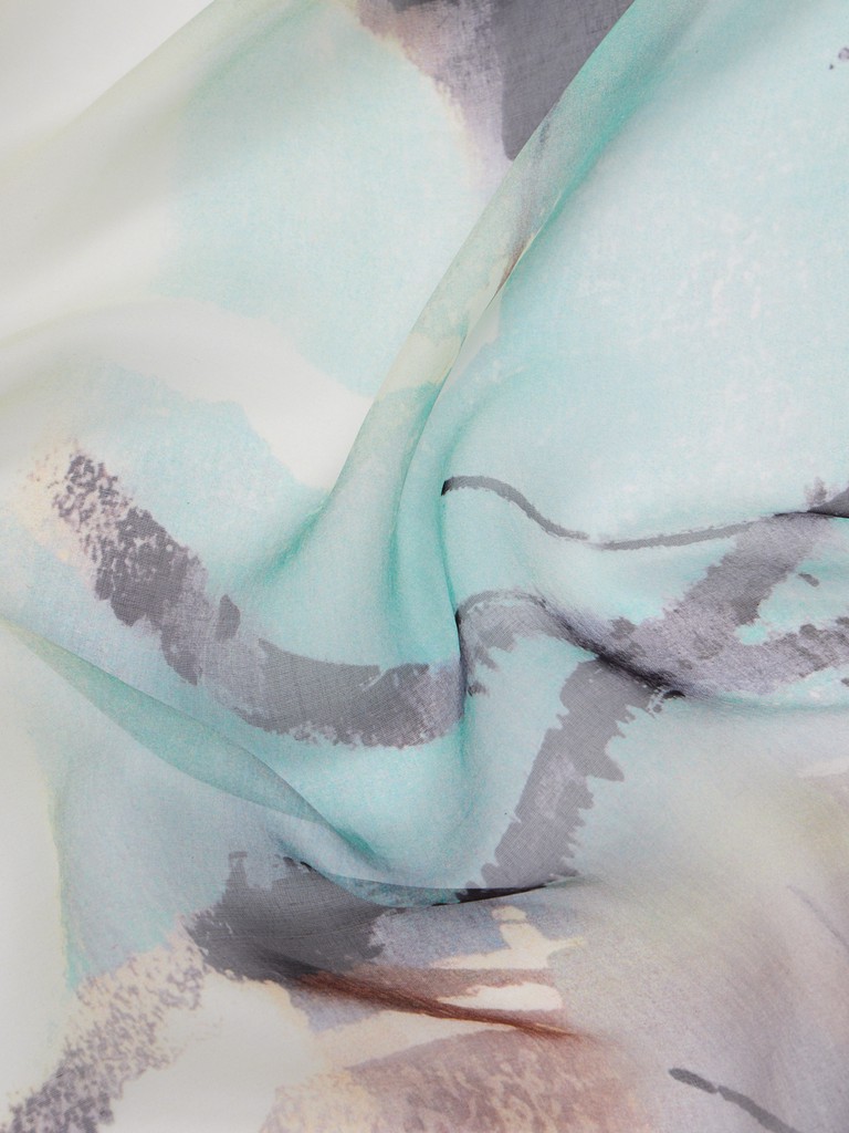 Единый принт наносится на абсолютно непохожие по своему составу материалы — кожу и велюр (сумки и перчатки), шерсть, вискозу, полиэстер, лен и хлопок (платки и одежда), материалы с водостойким покрытием (зонты).