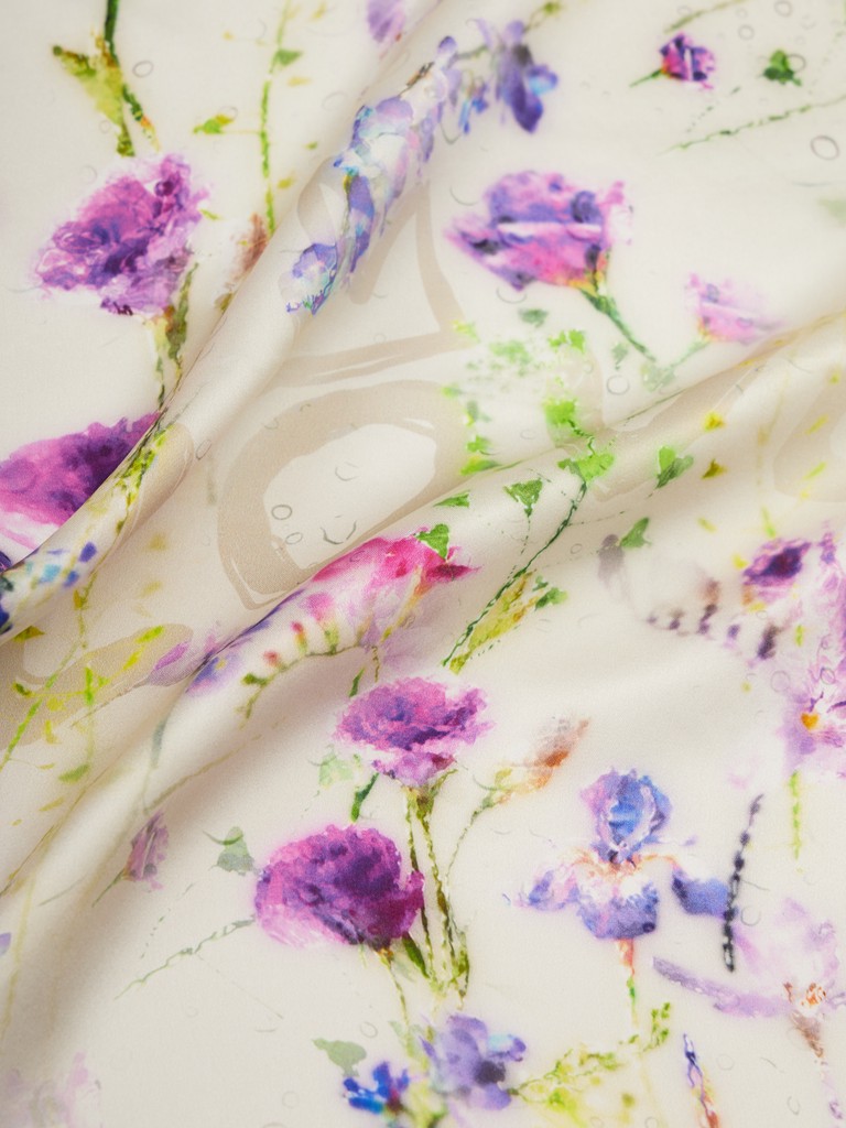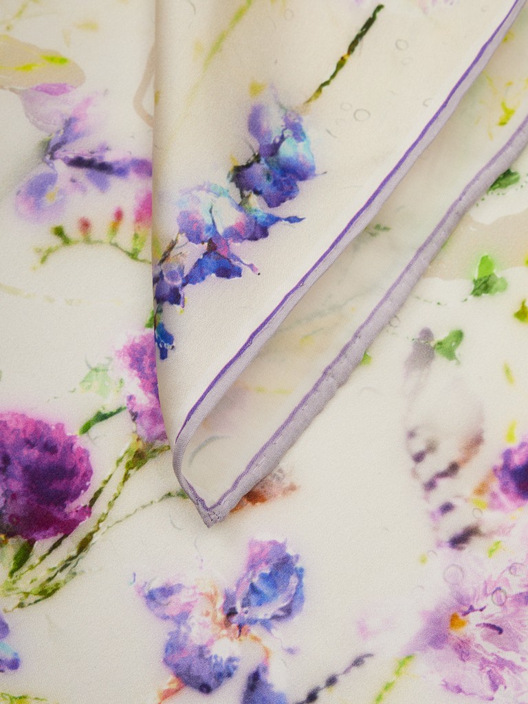 Единый принт наносится на абсолютно непохожие по своему составу материалы — кожу и велюр (сумки и перчатки), шерсть, вискозу, полиэстер, лен и хлопок (платки и одежда), материалы с водостойким покрытием (зонты).