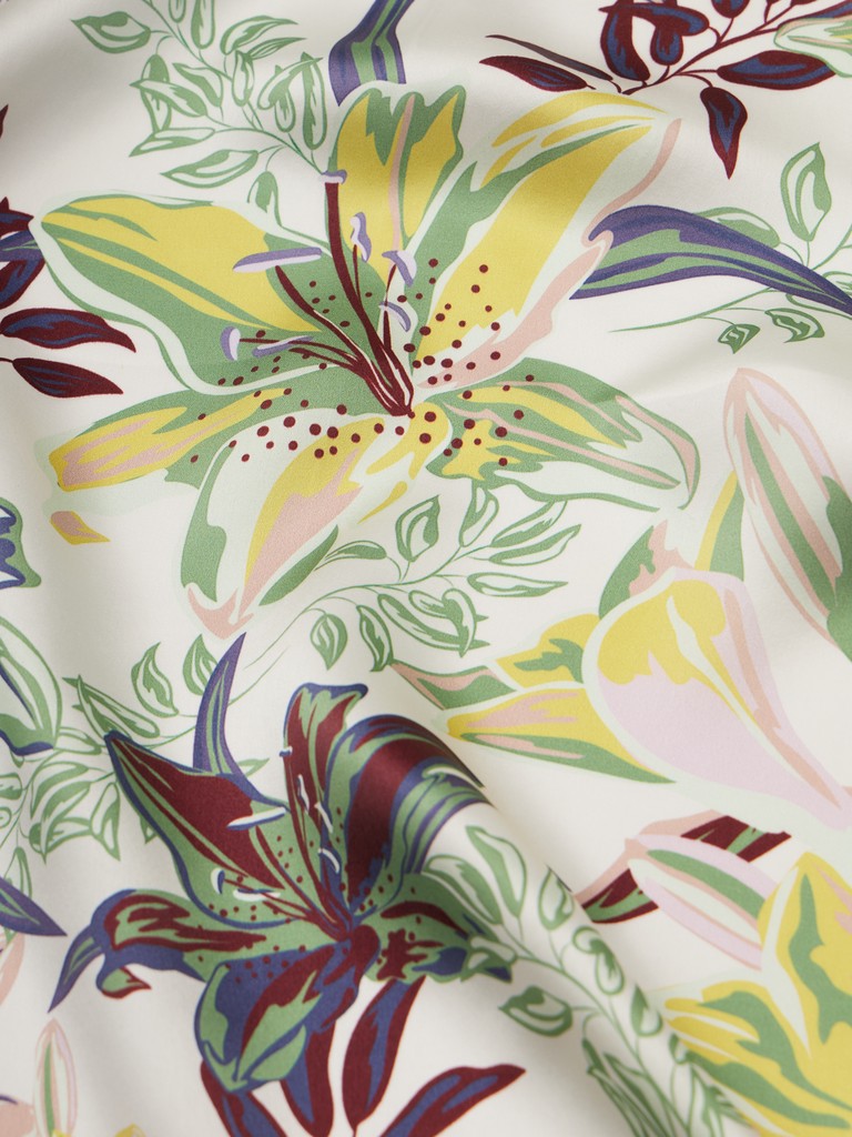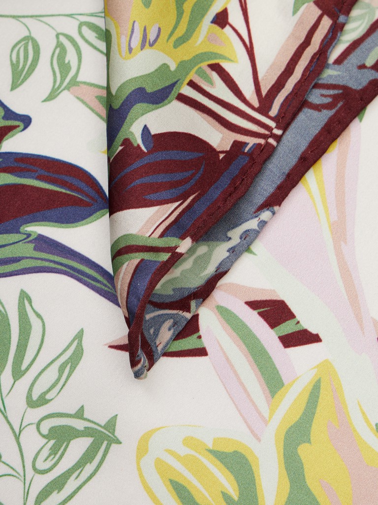 Единый принт наносится на абсолютно непохожие по своему составу материалы — кожу и велюр (сумки и перчатки), шерсть, вискозу, полиэстер, лен и хлопок (платки и одежда), материалы с водостойким покрытием (зонты).