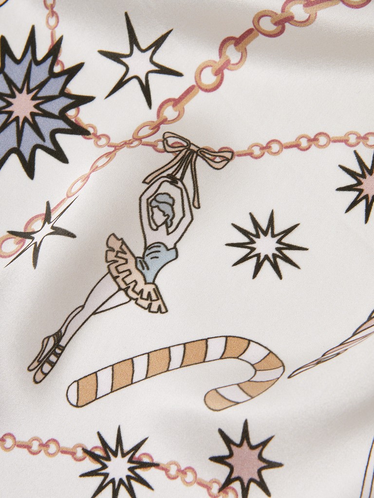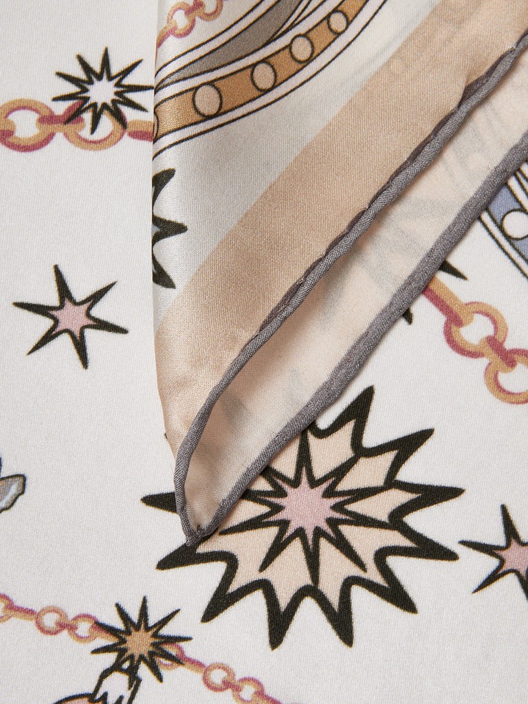 Единый принт наносится на абсолютно непохожие по своему составу материалы — кожу и велюр (сумки и перчатки), шерсть, вискозу, полиэстер, лен и хлопок (платки и одежда), материалы с водостойким покрытием (зонты).