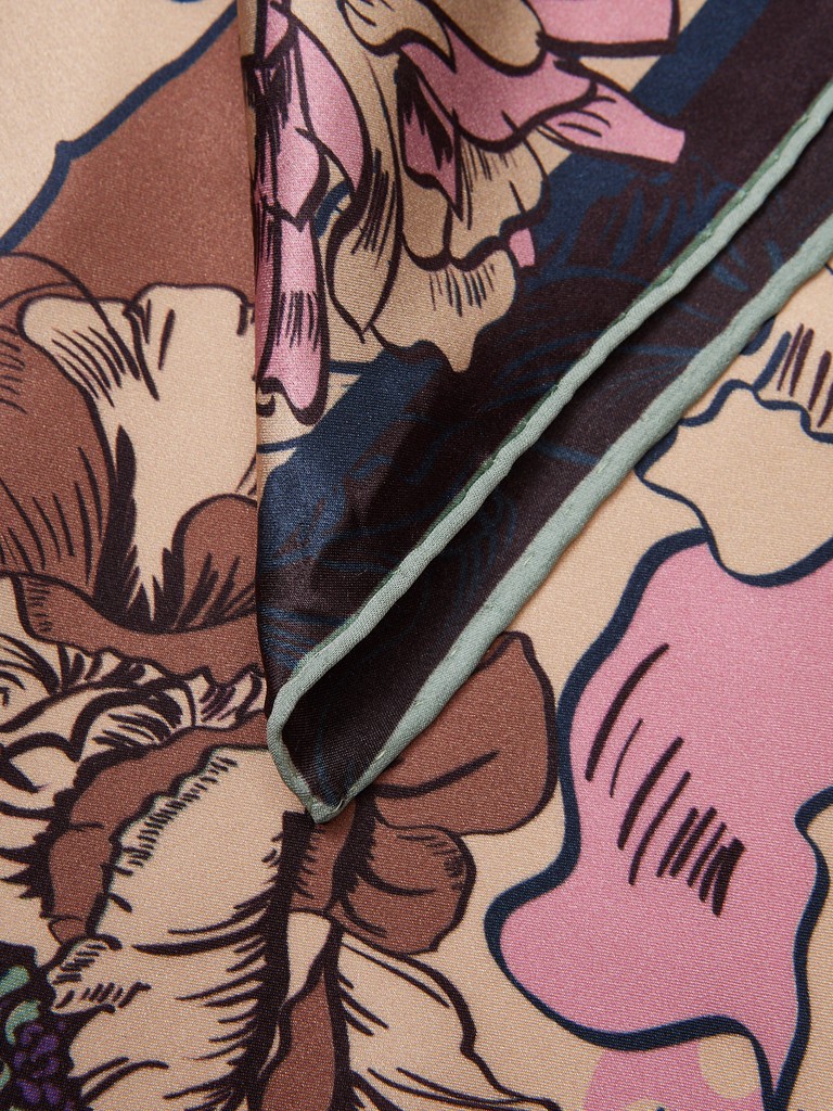 Единый принт наносится на абсолютно непохожие по своему составу материалы — кожу и велюр (сумки и перчатки), шерсть, вискозу, полиэстер, лен и хлопок (платки и одежда), материалы с водостойким покрытием (зонты).