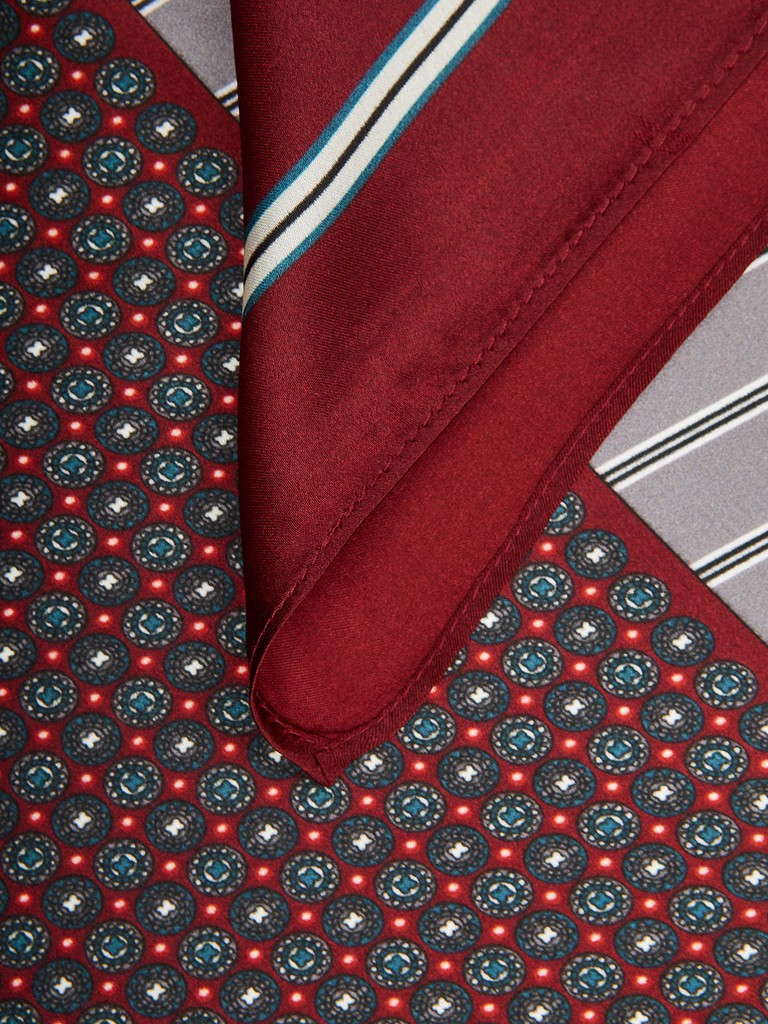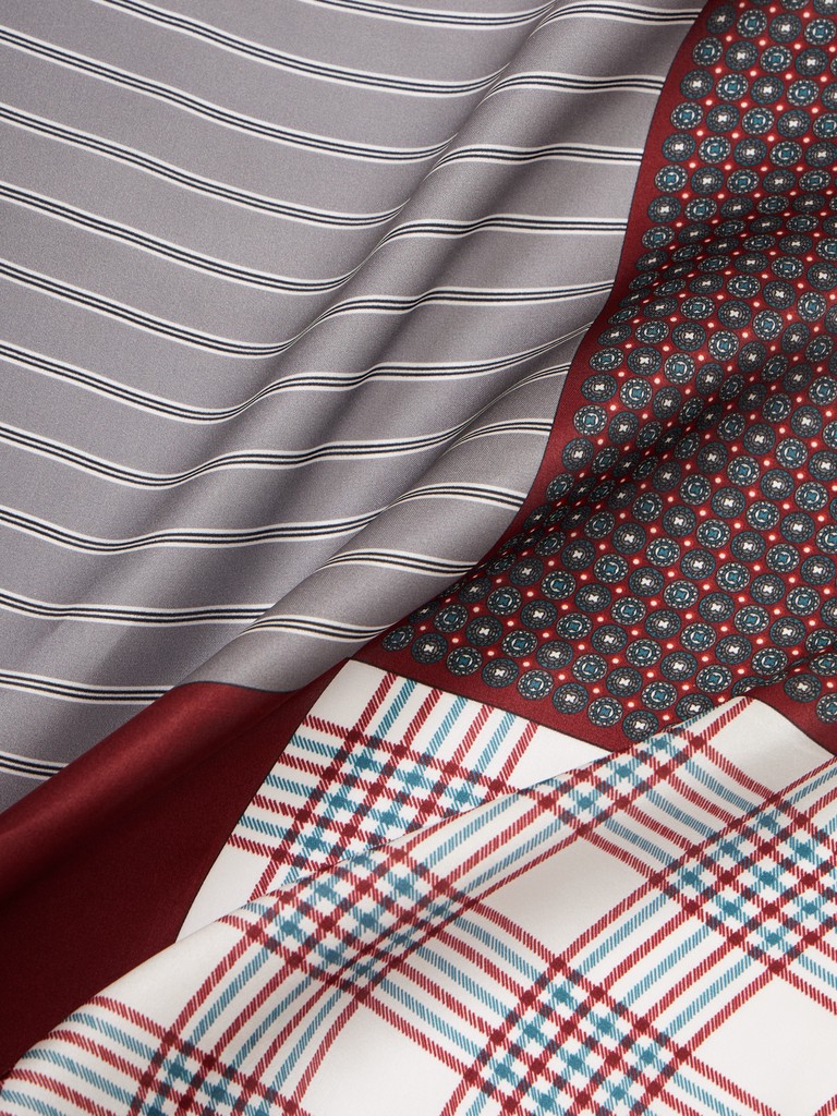 Единый принт наносится на абсолютно непохожие по своему составу материалы — кожу и велюр (сумки и перчатки), шерсть, вискозу, полиэстер, лен и хлопок (платки и одежда), материалы с водостойким покрытием (зонты).